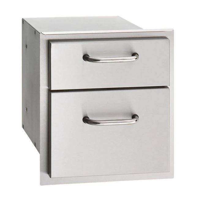 American Outdoor Grill 16-15-DSSD Double Drawers provides a high end access drawer option to help complete your outdoor kitchen. The double wall 304 stainless steel construction ensures longevity while the drawers features raised “tubular” handles. The 16″ x 15″ drawers allows space to store your favorite outdoor accessories and utensils – bring your indoor kitchen to the beautiful outdoors when you feature this AOG 16″ x 15″ Double Access Drawers in your outdoor kitchen.