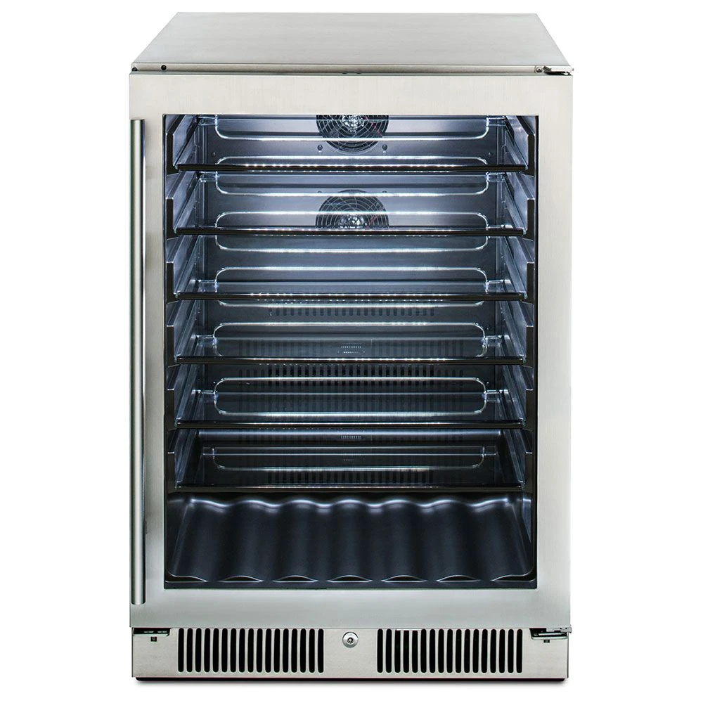 Blaze BLZ-GDBEV-5.5 Outdoor Glass Door Beverage Cooler 5.5, 24-inches provides a high quality outdoor refrigerator to complete your ultimate outdoor BBQ paradise. This unit features heavy-duty stainless steel construction with a compact design for a blend of style and durability that will stand up to the elements in any climate. This outdoor refrigerator has a large 5.5ft³ capacity that provides plenty of outdoor refrigeration space, while adjustable shelving allows for customizable storage. Adjustable thermostat controls allow for dialing in temperature via a digital interface, while interior LED lighting offers bright lighting even at night.