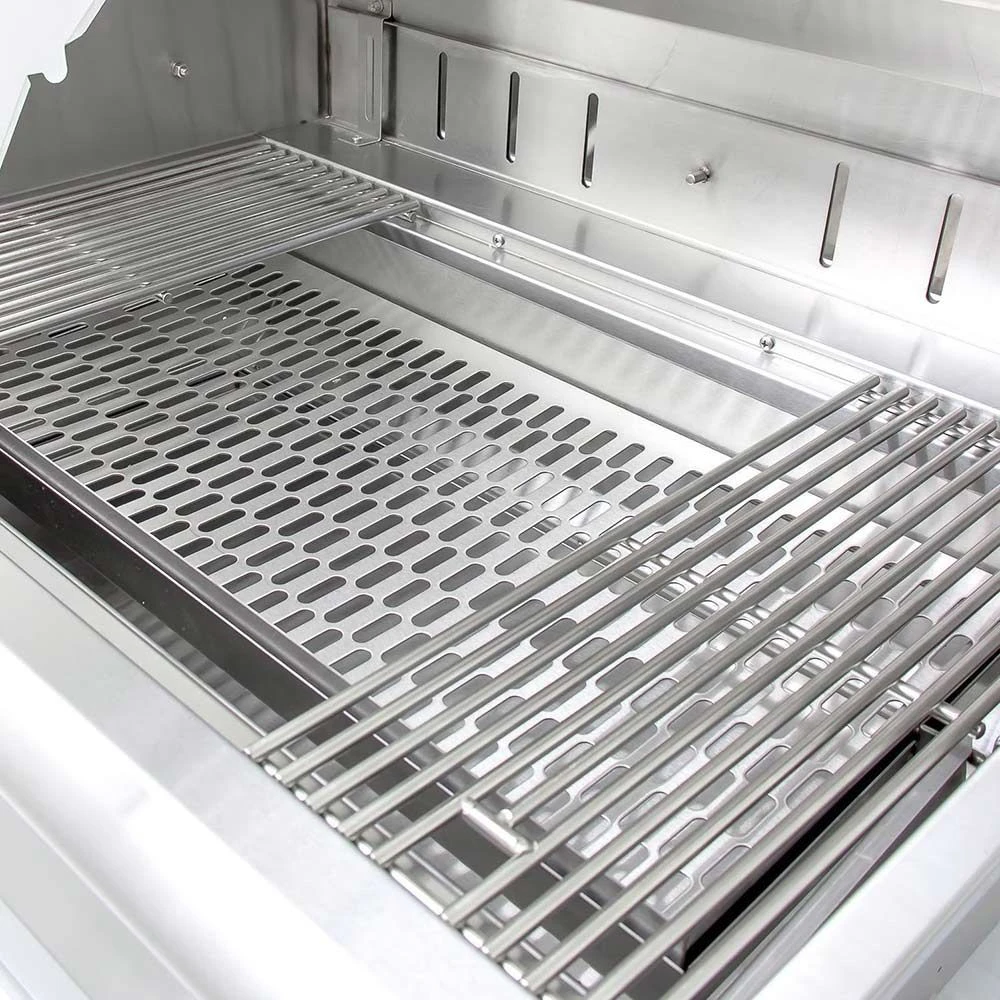 - Heavy-duty 304 stainless steel grill grates with a matte finish for a non-stick surface