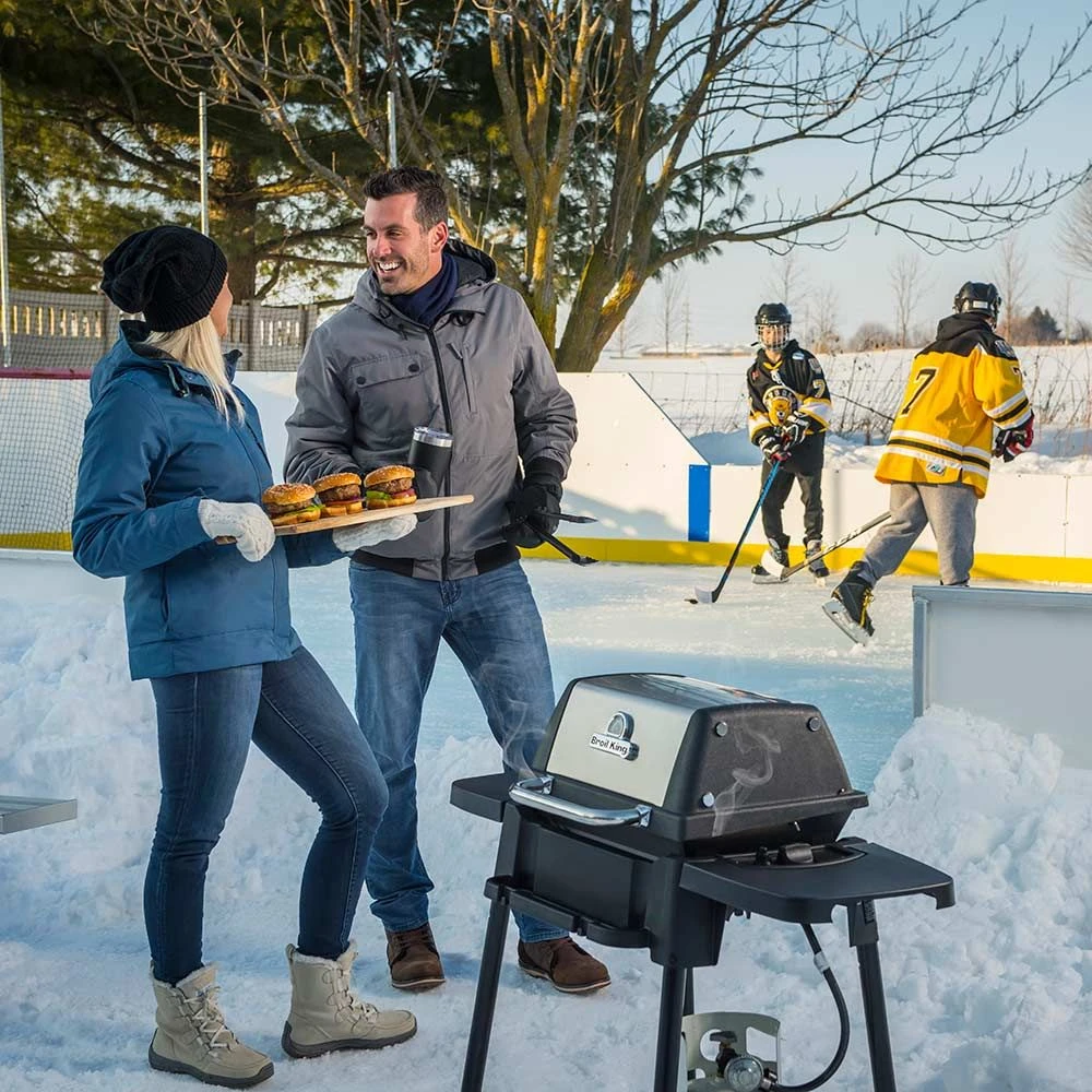Broil King 950654 Porta-Chef 120 Portable Grill, 18-Inches, Propane offers a premium grilling experience on the go. This grill features aluminum and stainless steel construction for proven durability and excellent heat retention. Heavy-duty porcelain-coated cast iron cooking grids feature a pointed side for perfect steakhouse sear marks and a grooved side for continuous basting. The stainless steel Flav-R-Wave cooking system offers impressive heat distribution across the entire surface of the grill, while drippings that fall onto the Flav-R-Wave system are instantly vaporized. This grill’s tube burner features high quality, heavy-duty stainless steel construction for even heating.