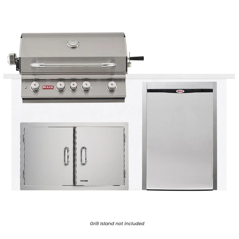 The included double access doors offer convenient storage space within your outdoor grill island. This component features the same high quality construction as the rest of Bull’s products. The included 4.5-cubic-foot refrigerator makes it easy to store ingredients, leftovers or drinks, while the included refrigerator frame allows for a professional finished appearance during installation. Additionally, the included grill head cover helps protect your grill when not in use while offering an attractive black design. Note: island sold separately.
