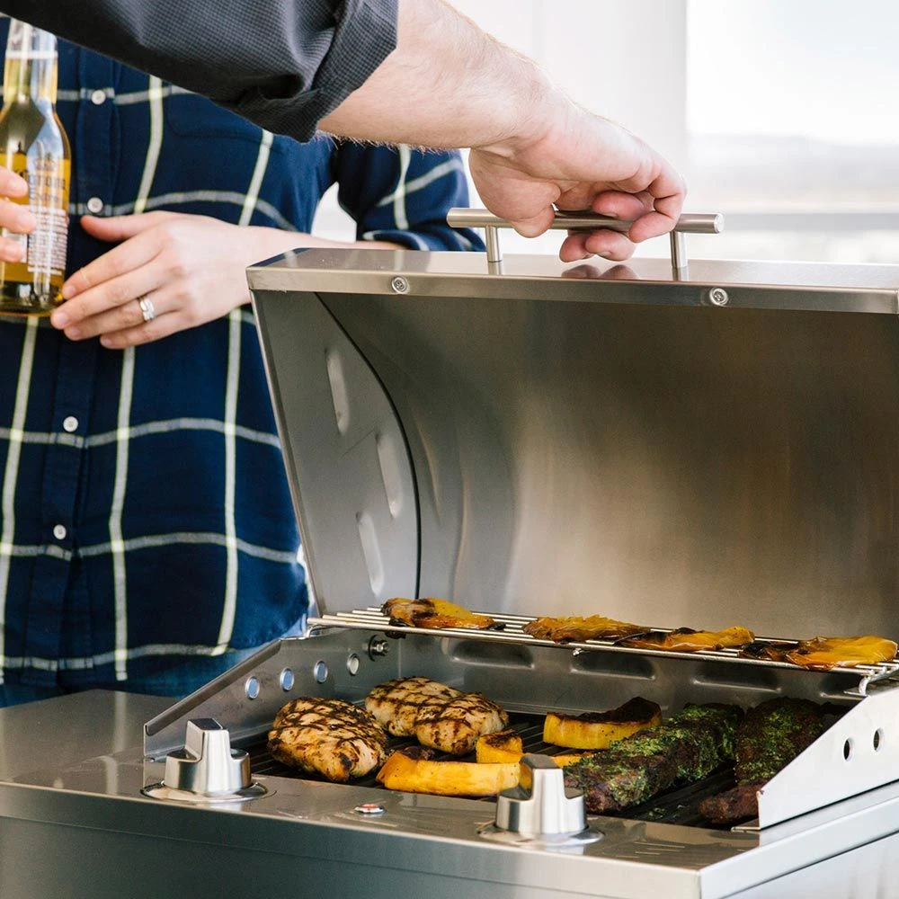 - With a temperature range of 170 degrees to 550 degrees Fahrenheit, this grill provides a versatile cooking appliance for your outdoor kitchen.