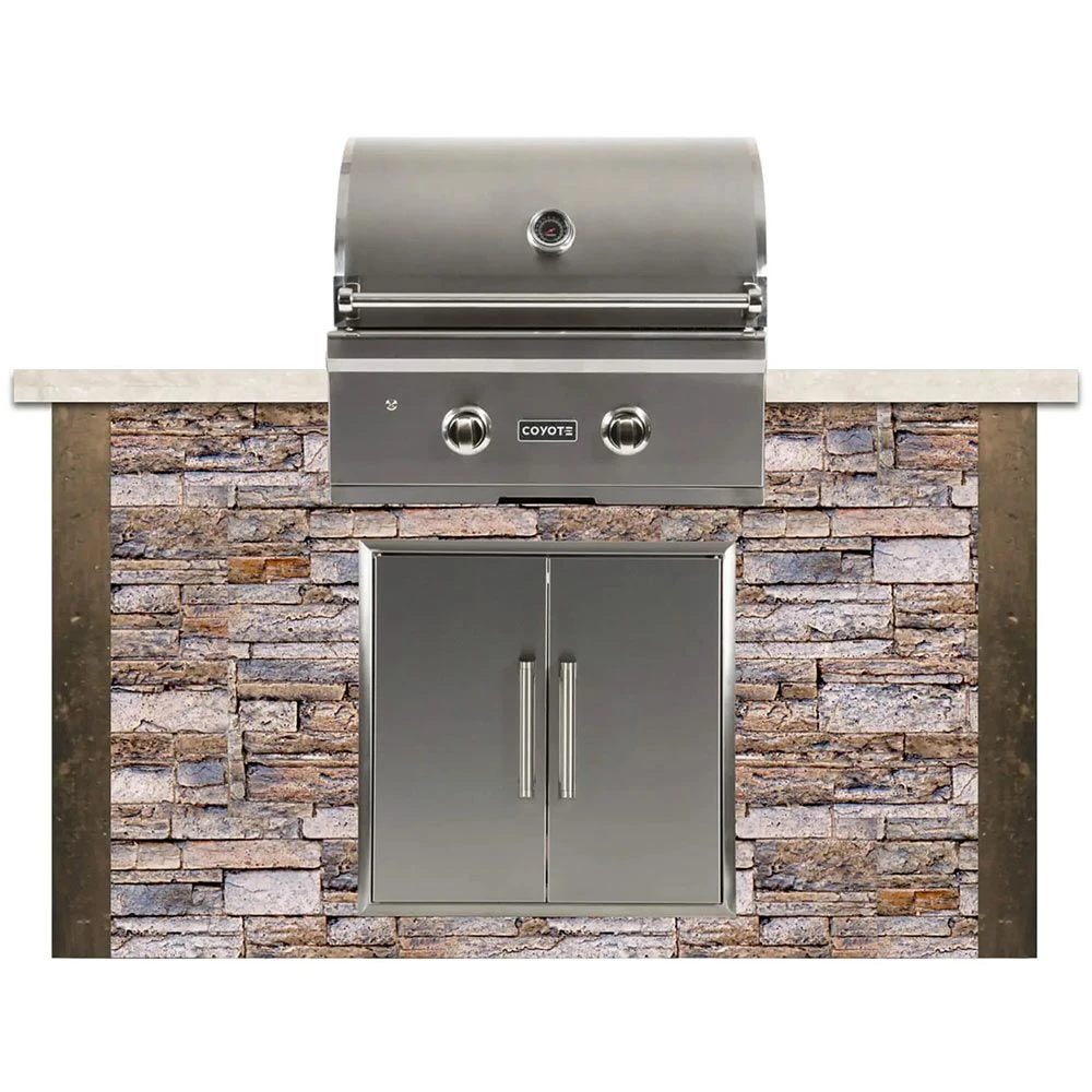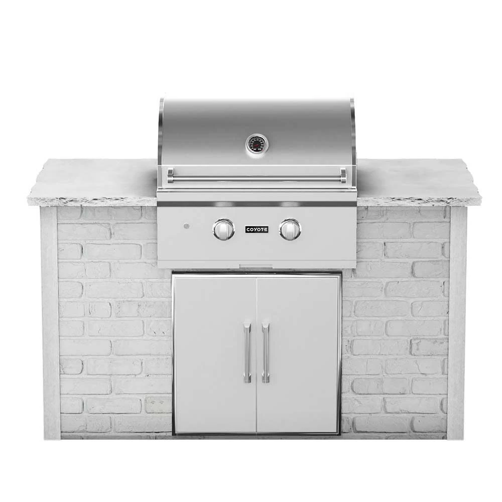Coyote Ready-To-Assemble 5-Foot Outdoor Kitchen Island with 28-Inch C-Series Gas Grill & Access Doors (RTAC-G5) provides a premium grilling option for your outdoor kitchen. The Coyote C-Series grill has been manufactured for high performance with two Coyote Infinity Burners designed to put out 40,000 BTU of heat across 640 square inches of cooking space. Complete 304 stainless steel construction ensures heavy-duty durability, while interior grill lighting makes in easier to see the grill surface in low-light conditions. This base grill can also be upgraded with a variety of products and accessories custom built for this grill model (sold separately).
