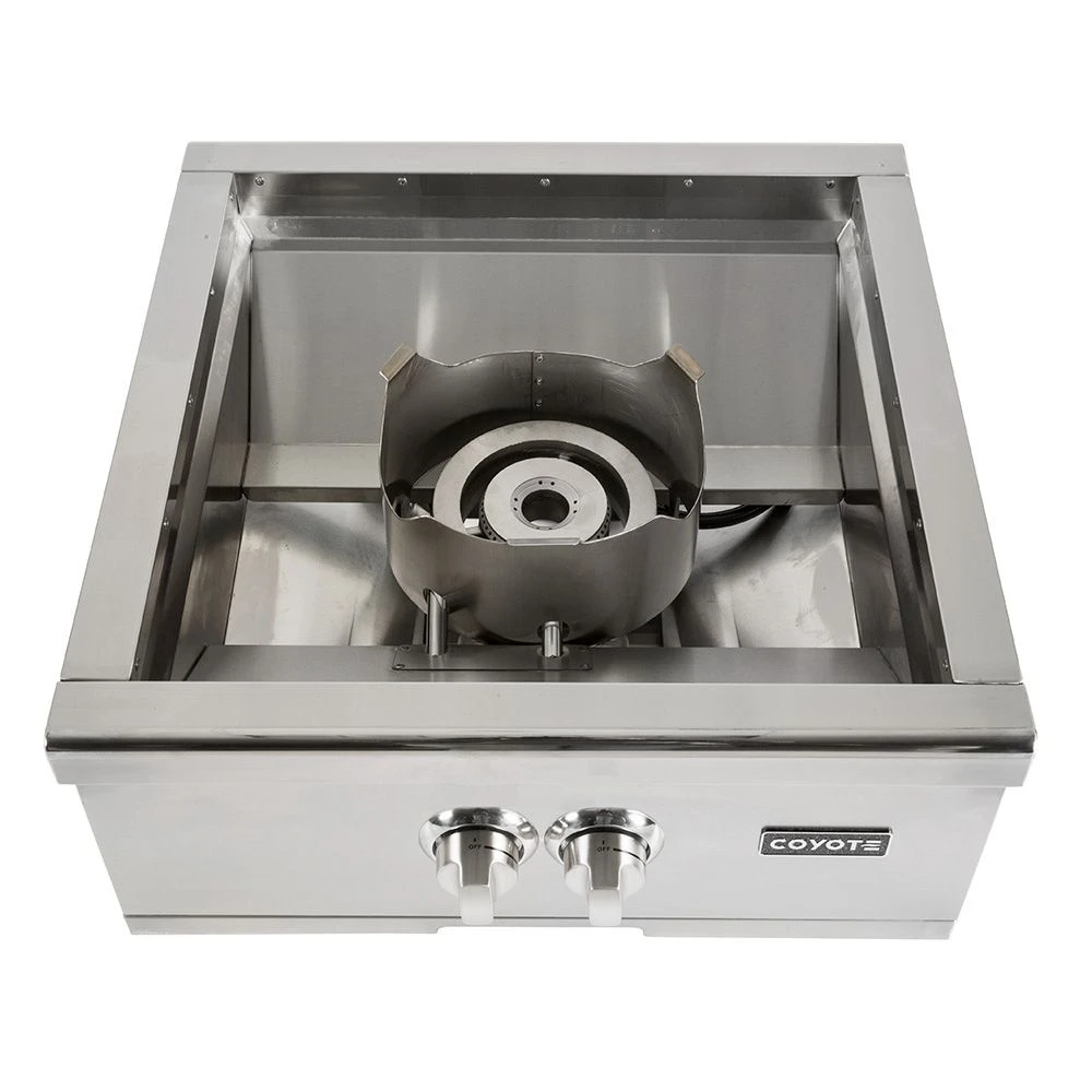 Coyote Stainless Steel Built-In Power Burner (C1PB) provides a premium addition to your outdoor grilling setup. Featuring 304 stainless steel construction, this durable burner has been designed to match the quality of the Coyote grill line. The dual-valve burner offers precision control and heating up to 60,000 BTU, while the high-end design of this burner allows it to simmer at a BTU output as low as 1,000 BTU to meet the needs of your cooking. A stainless steel lid is included, and a variety of additional products are available to help you get the most out of your burner (sold separately).