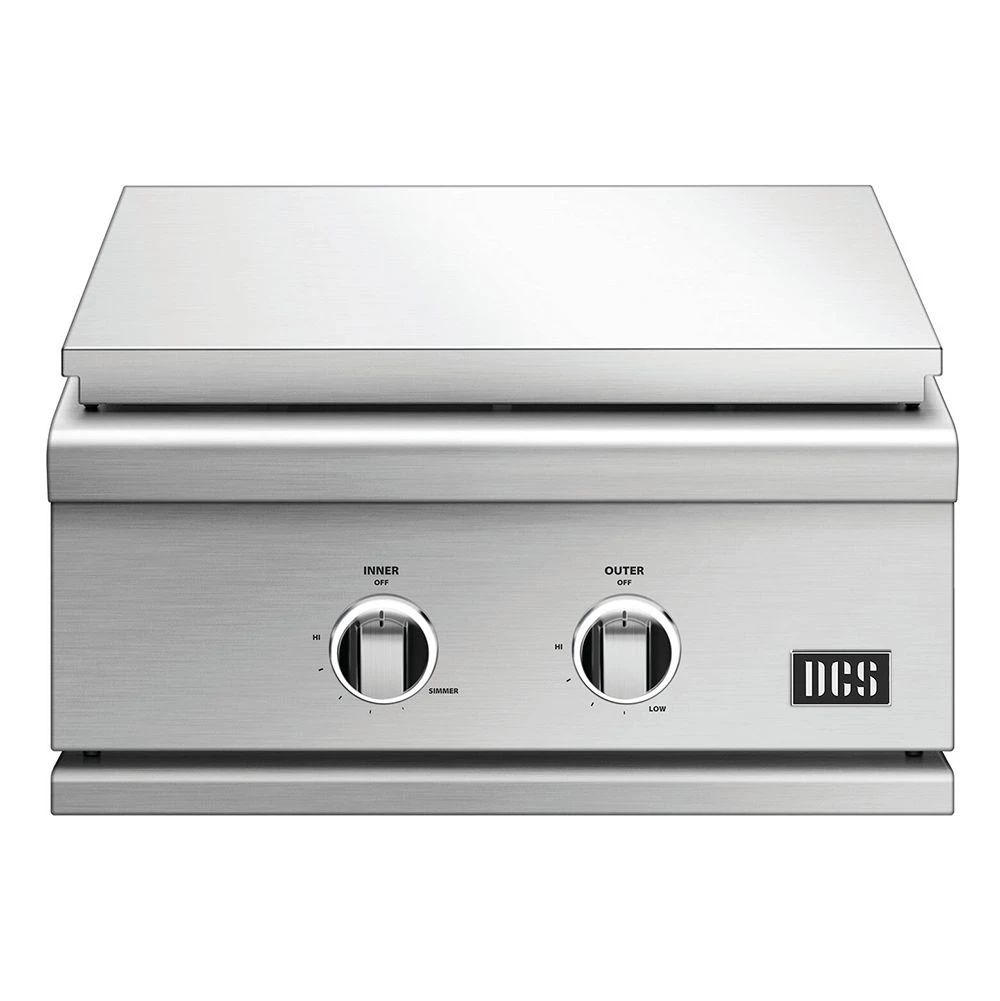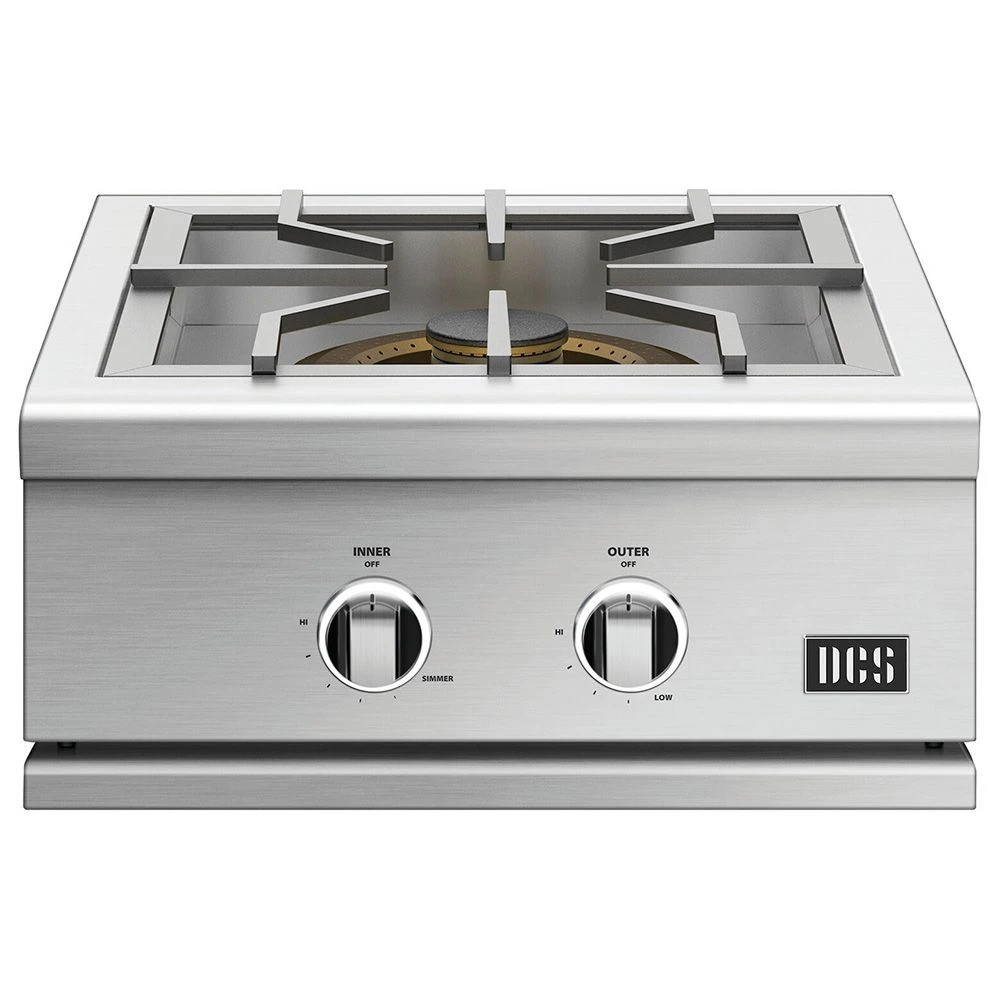DCS PBE1-24 Series 9 24-Inch Built-In Power Burner provides a high-end power burner to help complete the ultimate outdoor kitchen. Featuring cast brass and 304 stainless steel construction, this power burner offers long-lasting durability for many years of premium outdoor cooking. Specially designed grill grates offer excellent support for pots and woks of all sizes, while cast brass burners offer a quality design and superior durability. This power burner offers an impressive combination of powerful heat and precise temperature control from 70,000 BTU to 1,300 BTU, giving the flexibility for cooking at every temperature from a rapid boil to a slow simmer. Interconnected illuminated dials match the suite of DCS Series 9 products for a uniform design to complete your outdoor kitchen setup.