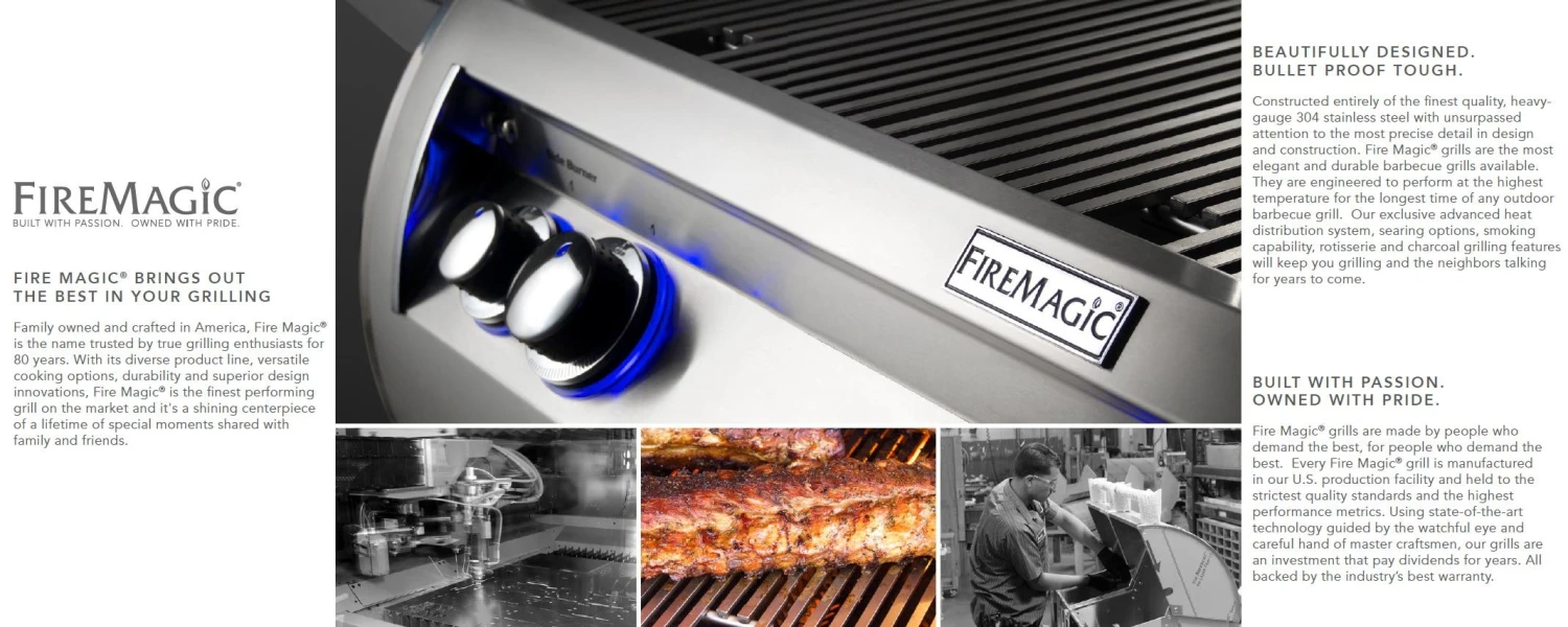 The Fire Magic Aurora Series offers great value by combining high performance and versatility without the extreme price tag as the higher end grill series. The Fire Magic Aurora Series offers many of the same features as the best grills on the market, upholds the sleek styling known to Fire Magic, and is designed to provide tremendous function and durability while grilling – an unbeatable combination.