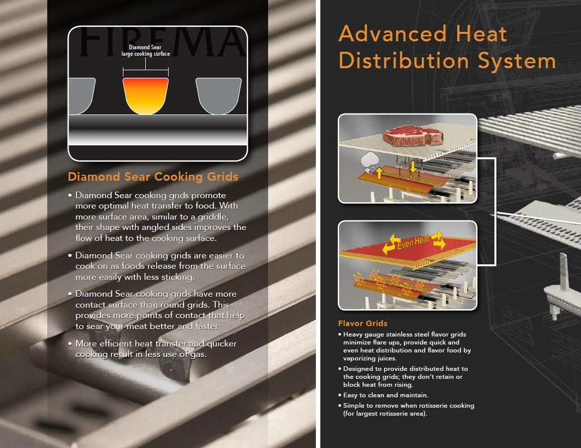 - Diamond Sear Cooking Grids Heavy Duty 304 stainless steel Diamond Sear cooking grids create more contact points and offer optimal cooking surface for even heat distribution and searing performance