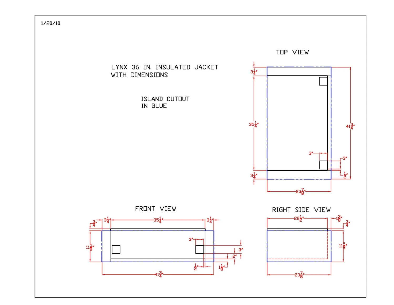 Lynx LIJ36 Insulated Jacket For 36-Inch Built-In Grill provides a high quality accessory for use with your built-in model Lynx BBQ grill. This unit features a heavy 16-gauge 304 stainless steel construction with smooth welded joints for a blend of style and durability that will stand up to the elements in any climate. Designed for use with the 36-inch Lynx Professional Grill, this insulating jacket is required for use when installing the grill in a combustible cabinet but can also add insulation for non-combustible grill islands.