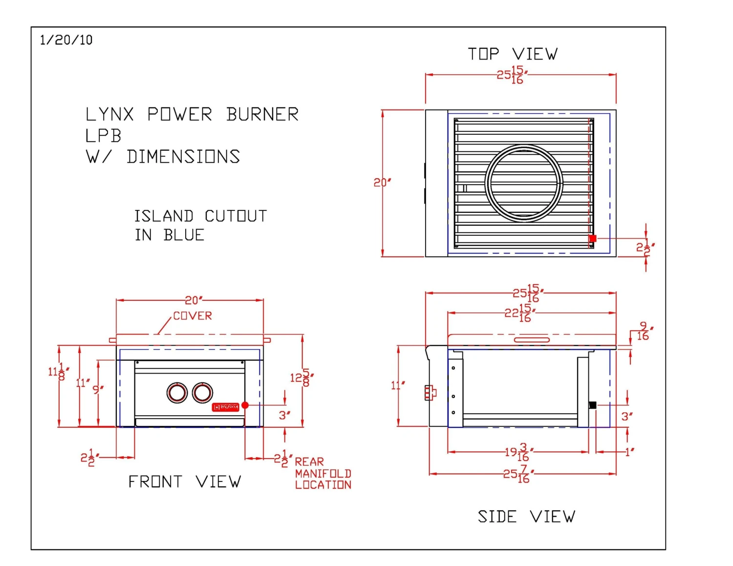 Lynx LPB 20-Inch Built-In Power Burner, 20-Inch provides a high performance side burner option to complete the ultimate outdoor kitchen. This unit features a heavy 16-gauge 304 stainless steel construction with smooth welded joints and polished mirrored edges for a blend of style and durability that will stand up to the elements in any climate. Designed for professional-style performance, the dual-ring cast brass burner provides a whopping 46,000 BTU capable of intense high heat or a low simmer for a range of cooking ability while the independent control knobs provided exceptional heat control. The burner and burner basin are sealed and easy to clean while the LED backlit control knobs and a hot-surface ignition combine to offer one of the most versatile outdoor cooking units on the market.