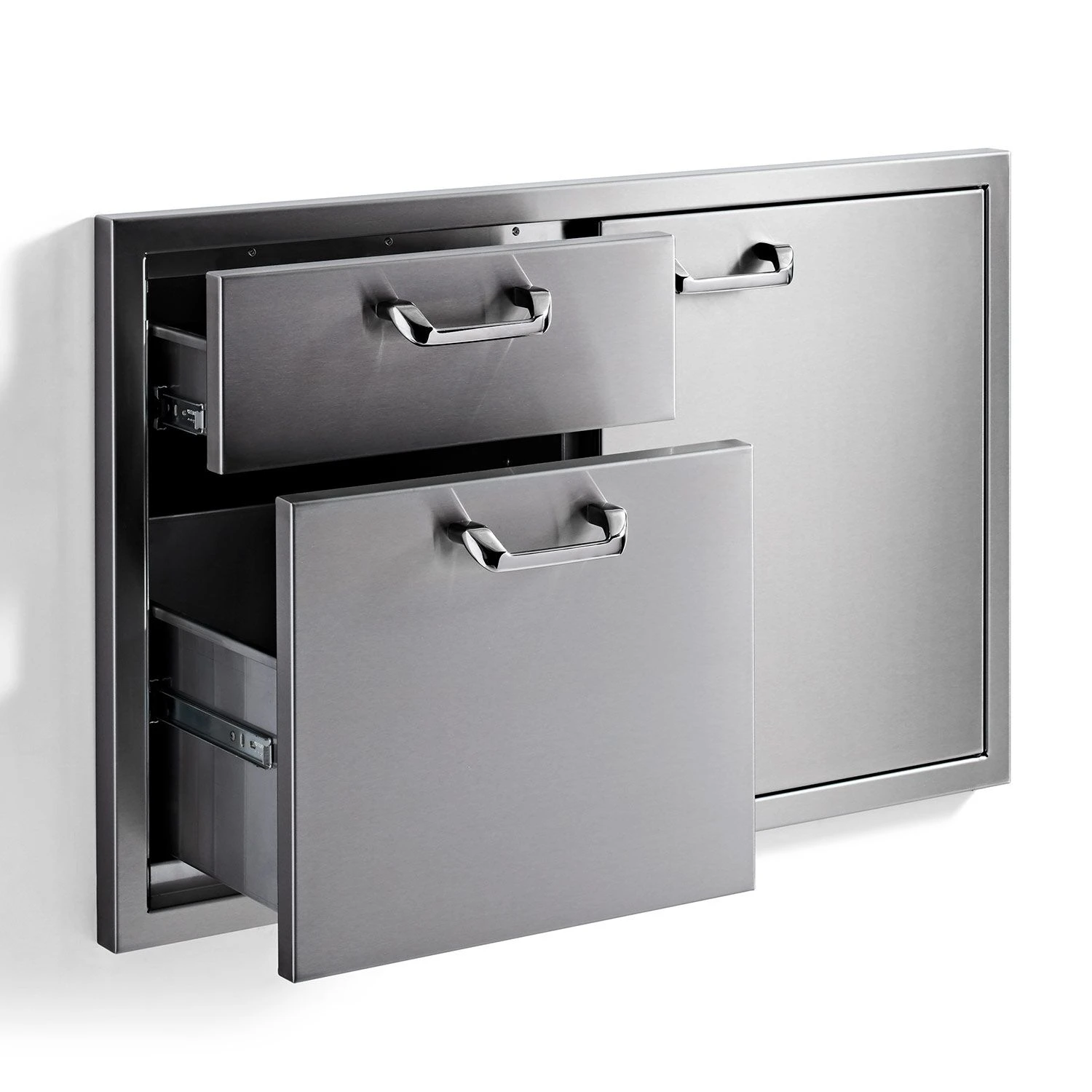 - Access Door & 2-Drawer Combo – Single access door and double drawers provide storage for your utensils and BBQ accessories conveniently outdoors