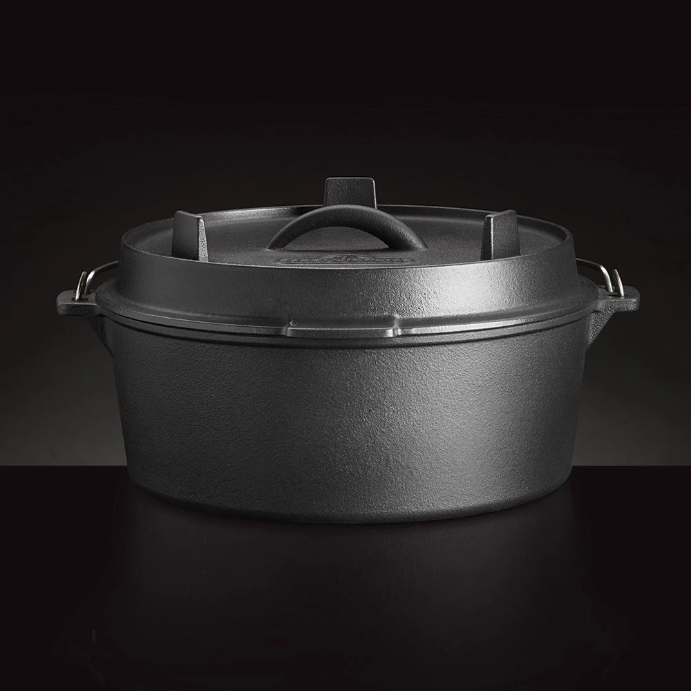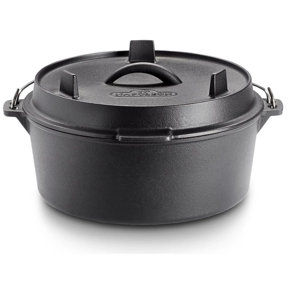 Napoleon 56059 Cast Iron Dutch Oven 6QT provides a 6-Quart, Cast Iron Dutch Oven that is just right for cooking on the barbecue. Cast iron is one of the best conductors of heat, distributing and retaining it for long periods of time to ensure food stays warm. Slow cooking for large numbers is the perfect use for this accessory. Use it anywhere, on or in the oven, the barbecue, and side burners, over or directly in charcoal, and even in your fire pit. This versatile Cast Iron Dutch Oven is great at making soups, stews, beans, and even baking bread. Both the lid and bottom feature integrated legs and the lid even doubles as a cast-iron frying pan. Elevate your cooking wherever you are with the Cast Iron Dutch Oven. Clever, multifunctional, and easy to maintain, every backyard benefits from the addition of a Napoleon barbecue accessory.