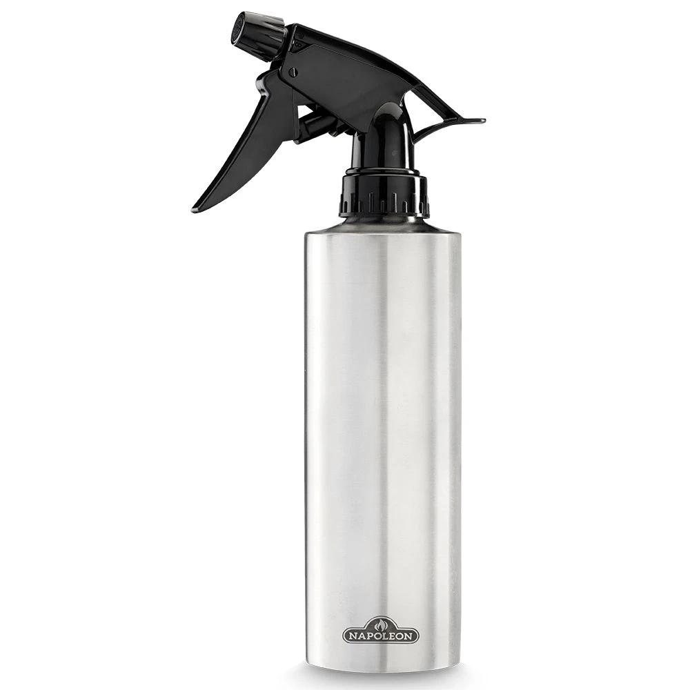 Napoleon 62047 Stainless Steel Spray Bottle provides a sleek and stylish stainless steel spray bottle to keep your essential liquids close by. The adjustable, locking, nozzle can provide delicate misting or focused streams for basting, seasoning your cooking grids, and keeping your foods moist and succulent. The sleek stainless design is durable and dishwasher safe, so cleanup is a breeze. Clever, multifunctional, and easy to maintain, every kitchen benefits from the addition of a Napoleon barbecue accessory. Our accessories provide you with the essentials to create delicious grilled food and then some to enhance your cooking arsenal with a wide variety of creative additions to broaden your culinary horizons.