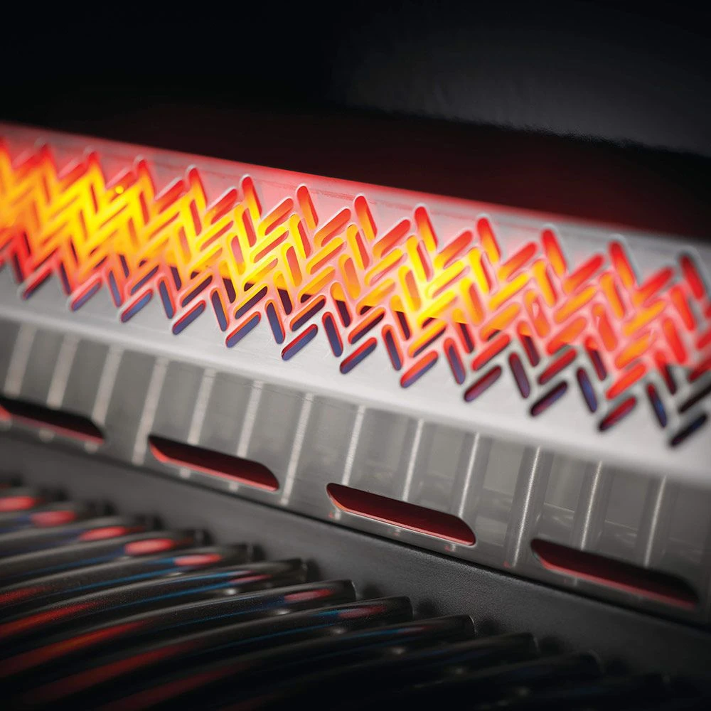 - Infrared Sizzle Zone Side infrared burner is rated for up to 14,000 BTU and features a porcelain coated cast iron grate to allow steakhouse style high heat searing at up to 1,800 degrees F