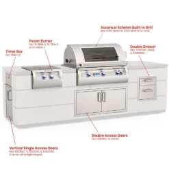 Fire Magic 115-Inch Outdoor Kitchen Island With Grill, Power Burner And Component Cut-Outs