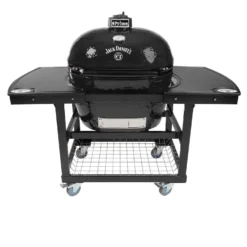 Primo CXLHJ Jack Daniel’s Edition Extra Large Oval Ceramic Charcoal Kamado Grill on Cart celebrates American ingenuity, quality craftsmanship, and the independent spirit of grillers and barbecuers who share the passion for great food and extraordinary whiskey and includes the option between (4) different cart options. The Oval XL features an extra-large 400in² cooking area and with the optional racking system you can get up to 680in²–that’s a lot of room for BBQ! Plus, the unique oval shape patented to Primo allows for dual zone cooking. Add the fire box divider to your purchase to make your Primo grill even more versatile. Enjoy the natural, smoky flavor of a charcoal grill and benefit from the versatility and quality that the premium grade ceramics of the Primo line has to offer.