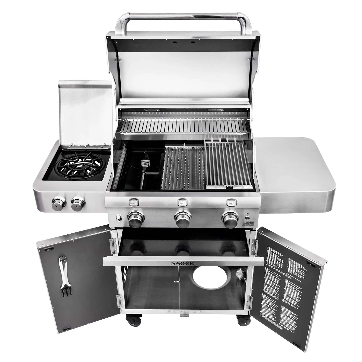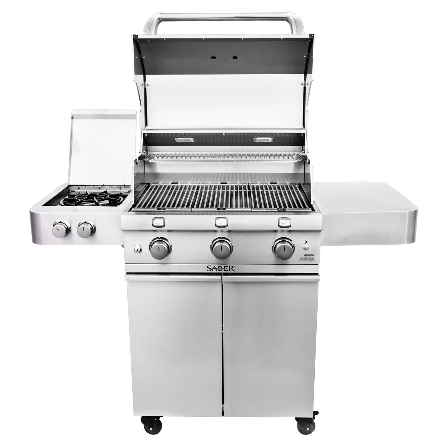 With its heavy duty 304 stainless steel construction, this Saber Stainless Series grill offers a time-tested design. A seamless welded stainless steel lid provides weather resistance as well as a quality appearance, while a multi-functional stainless steel warming rack offers versatility for your outdoor kitchen. Rounding out this grill’s impressive design is its internal halogen lights for improved nighttime visibility to give you everything you need for a premium grilling experience.