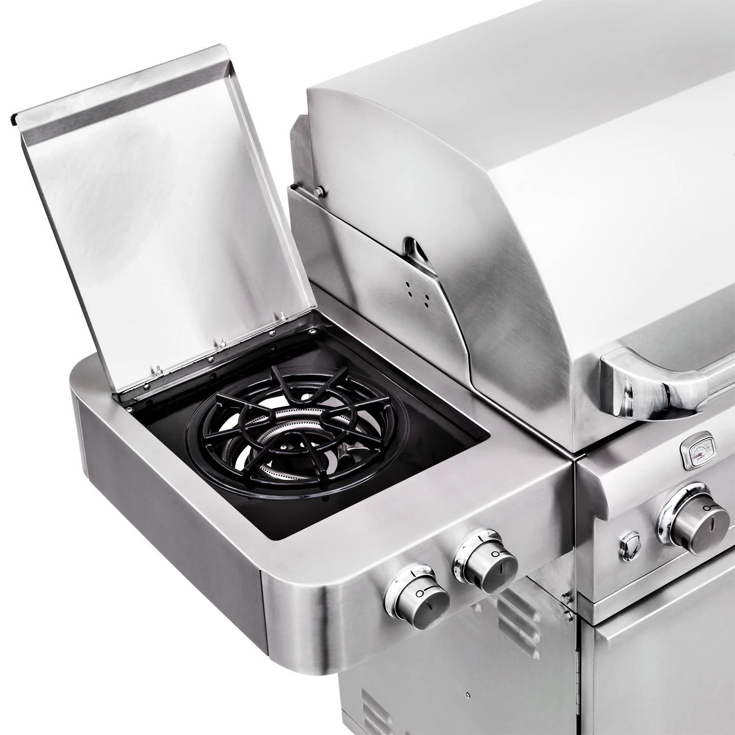 In addition to the main grill head, this freestanding grill offers the added functionality of an 18,000 BTU dual-control side burner to take your grilling to the next level. This side burner makes a great option for wok or skilling cooking, boiling, or frying and even features a reversible cast iron grate with flat top and round top surfaces for dynamic cooking potential. Finally, a fully-enclosed 304 stainless steel grill cart with double doors offers mobility as well as storage capabilities.