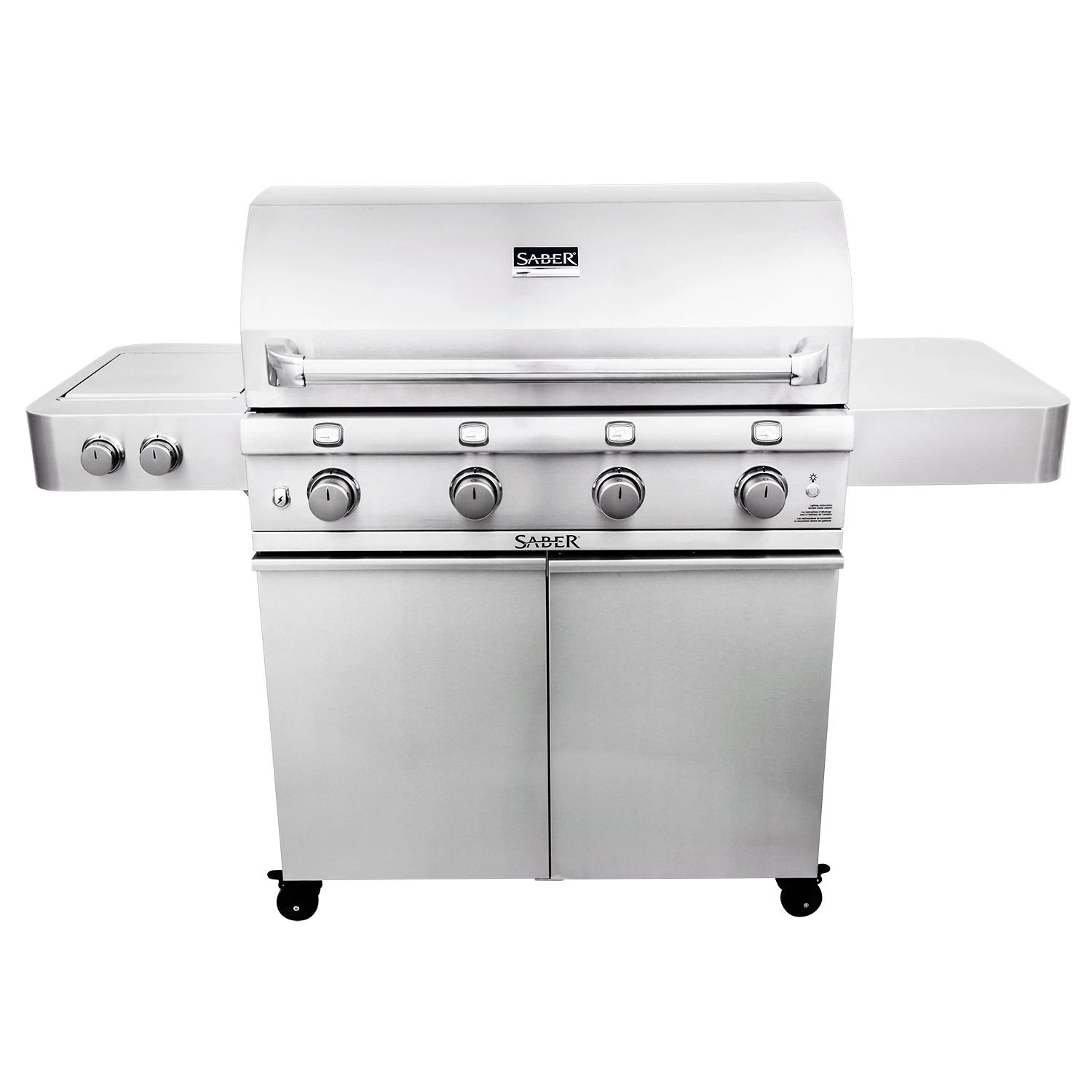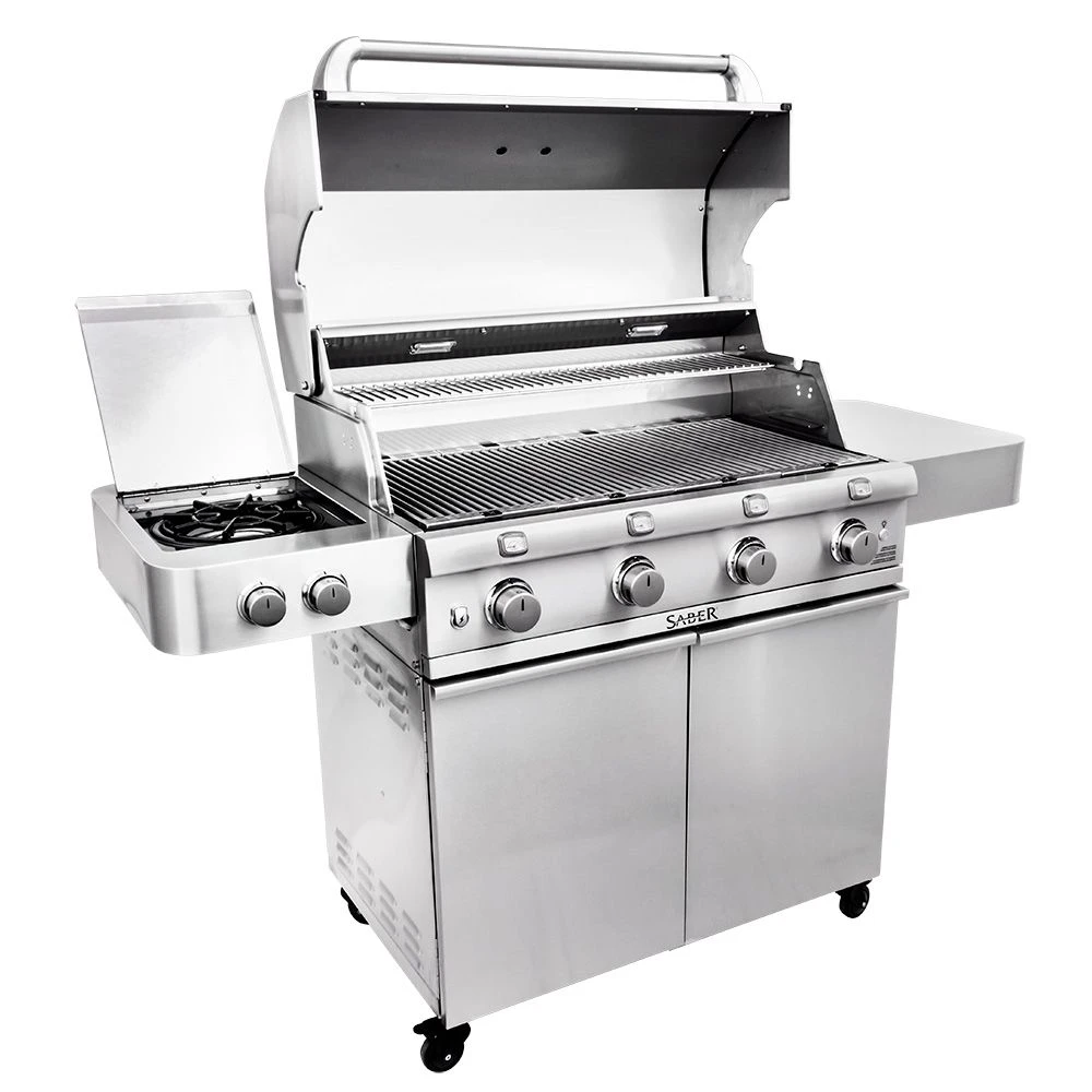 Saber R67SC0017 4-Burner Deluxe Freestanding Infrared Grill with Side Burner, 40-Inches provides a premium addition to your outdoor kitchen. This grill brings restaurant quality results to your home with its patented Saber Cooking System. This innovative burner design heats evenly, eliminates flare-ups, and uses up to 30 percent less gas than comparable burners. This grill also offers a wider temperature range than traditional grills–from high temperature searing to low and slow roasting and everything in between. The Saber infrared can also pre-heat to searing temperatures in only 12 minutes to reduce the time it takes to get your food from grill to plate. When you’re finished grilling, the easy-to-clean design of the Saber grill allows food drippings to be burned off and brushed away with ease to save you even more time.