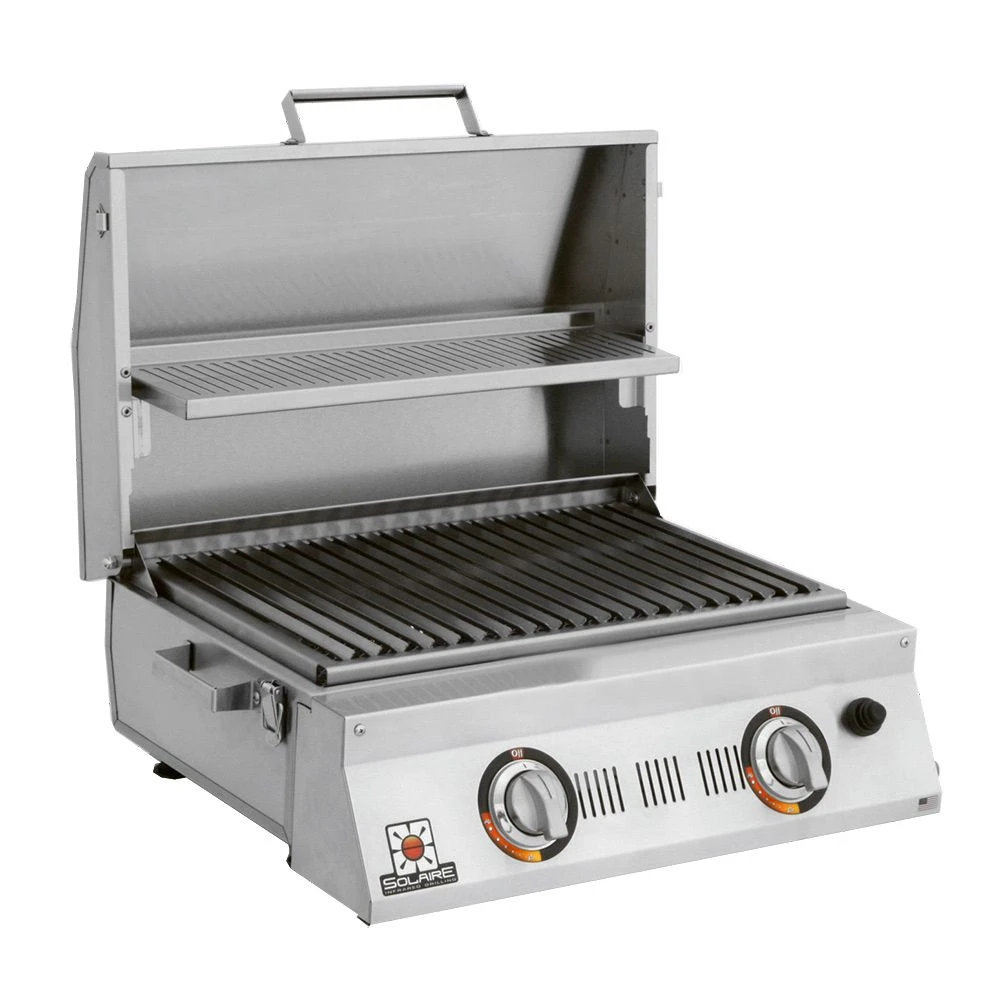 Solaire AA23A AllAbout Double Burner Infrared Portable Grill with Warming Rack provides a professional quality infrared grill designed to offer an improved backyard grilling experience. This double burner grill offers a full grilling experience in a small package. Featuring heavy duty stainless steel construction, this portable grill features the same quality design as larger models to ensure superior durability. Each 11,000 BTU burner offers impressive heat across 370 square inches of grilling area–great for those with limited space but who still want a high performance grill.
