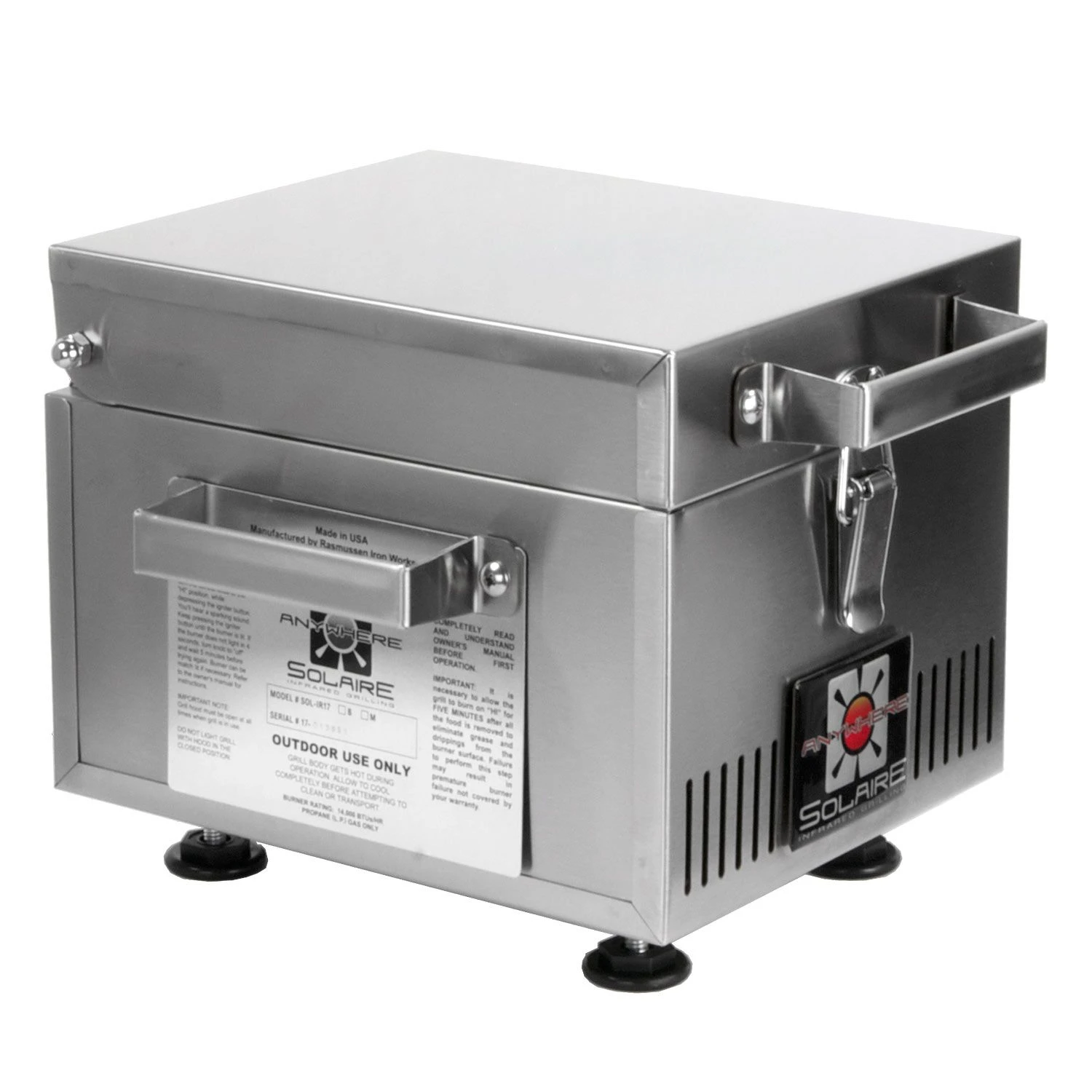 Solaire IR8A Anywhere Mini Personal Infrared Grill provides a professional quality infrared grill designed to offer an improved backyard grilling experience. This single burner grill offers a full grilling experience in a small package. Featuring heavy duty stainless steel construction, this portable grill features the same quality design as larger models to ensure superior durability. The 9,000 BTU burner offers impressive heat across the six-inch by eight-inch grilling surface–great for those with limited space but who still want a high performance grill. This unit is also great for sous vide, searing or other cooking methods along a full-size grill. This ultraportable grill weighs less than nine pounds, allowing for easy transport to picnics, tailgate parties or anywhere else you need to go.