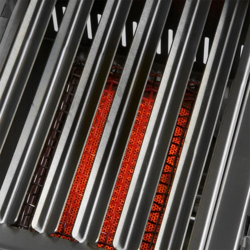 - Powerful infrared burners with ceramic plates and stainless steel construction ensure high performance grilling.