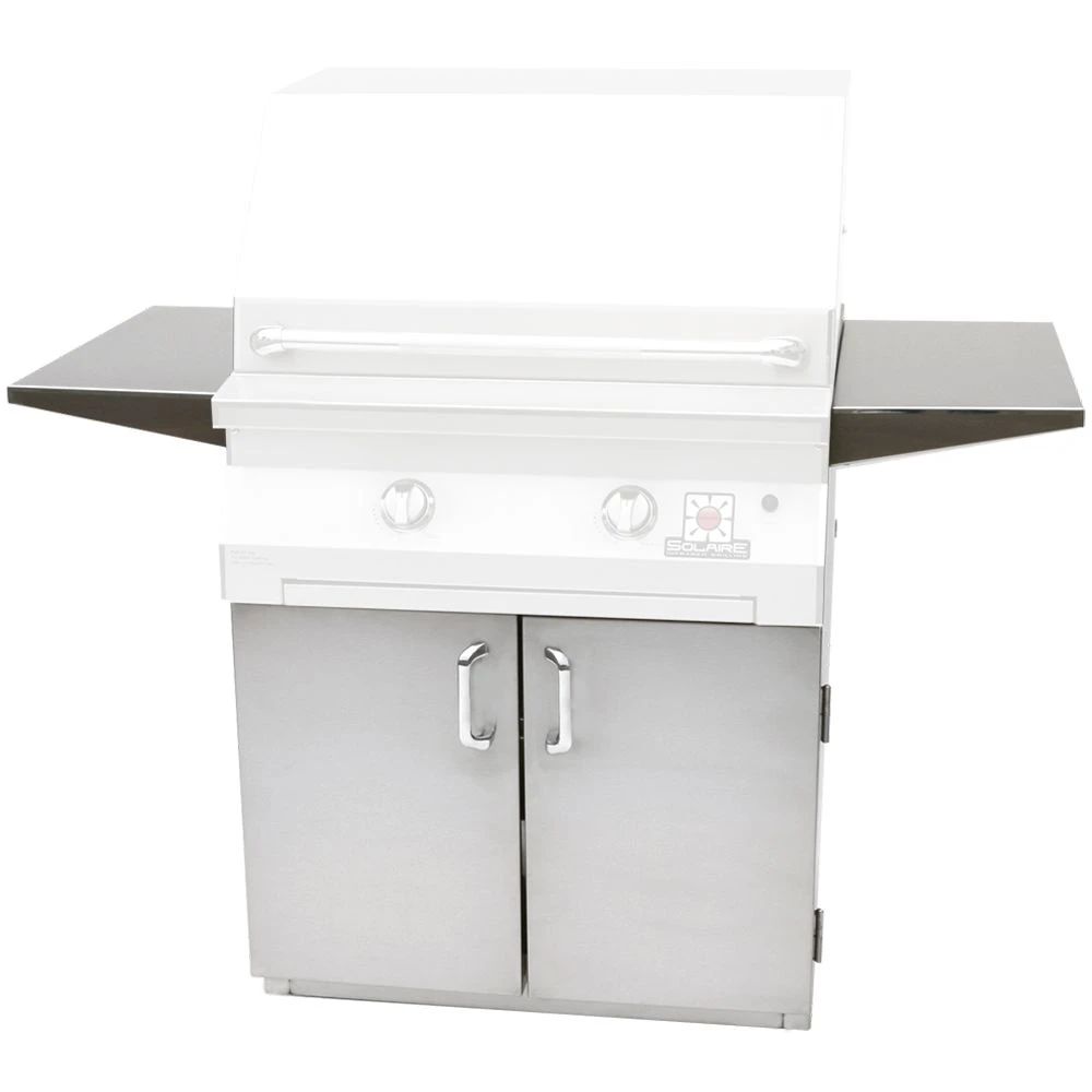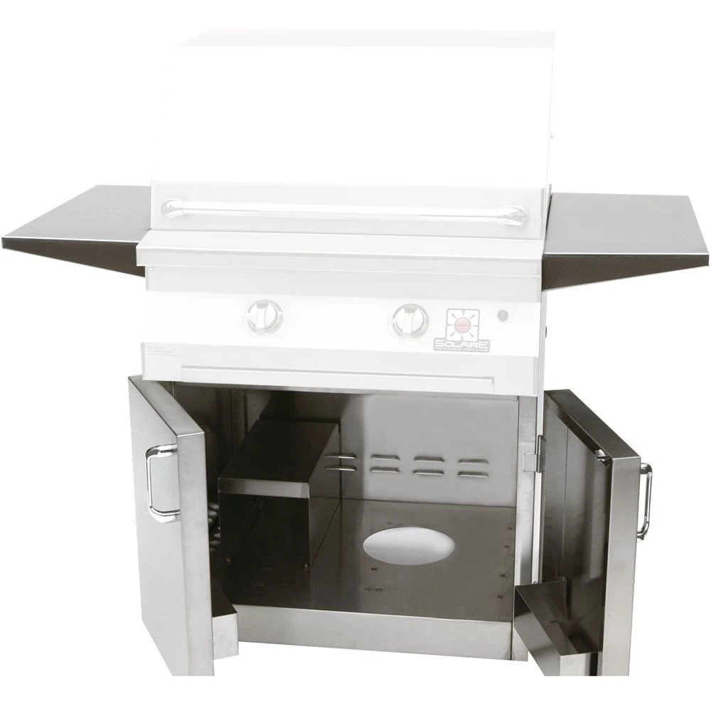 Solaire SOL-IR-30C 2-Door Standard 30-Inch Grill Cart offers a purpose-built base for your Solaire grill, built from high-quality and durable 304 stainless steel for lasting utility. The cart features smart hidden casters to make it easy to move and fold-down shelves for convenient space to prep while you work.