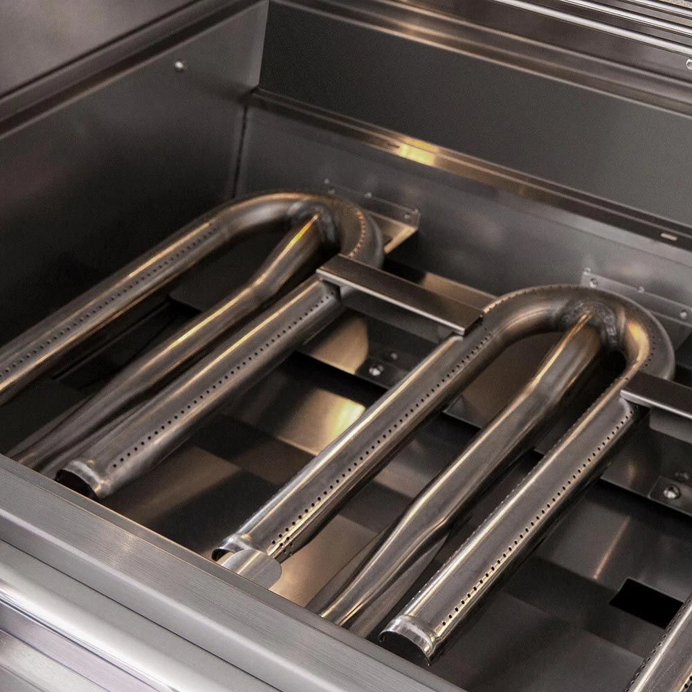 - Stainless Steel Tube Burners – (4) heavy duty #304 stainless steel U-tube burners are rated at 18,000 BTU each