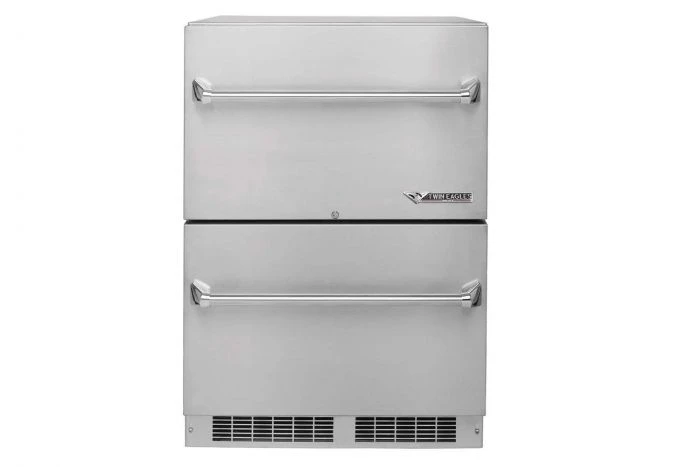 Twin Eagles TERD242-G Outdoor Two Door Refrigerator, 24×34.75-Inch allows you to keep all of your food and beverages cold and complete your outdoor kitchen with plenty of refrigeration space. Featuring heavy-duty construction, this item has been built to the same high standards as the rest of the Twin Eagles brand. With 6.1 Cubic Feet of storage, two removable wire shelves, and three door shelves you will be able to keep everything you need for your outdoor kitchen at hand and ready to use. This new model features improved efficiency to provide the same great results at a reduced energy cost.